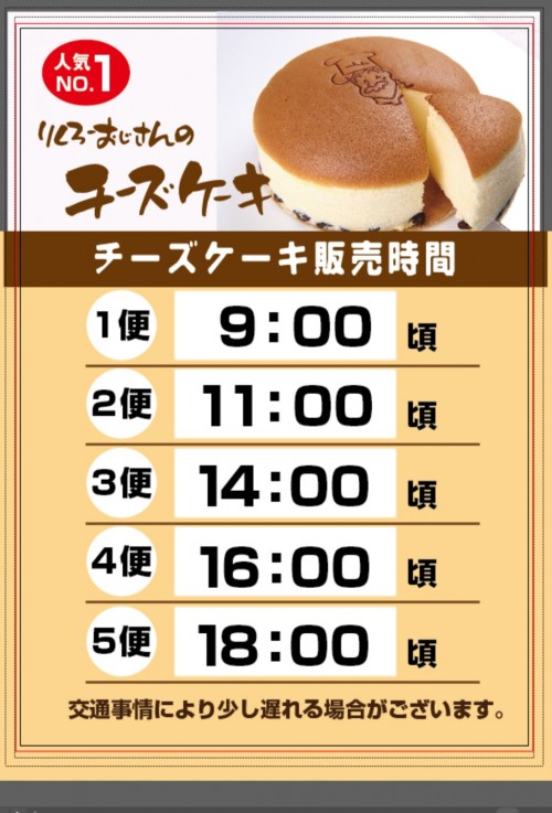 [Uncle Rikuro's shop] Notice of change in sales time of cheesecake